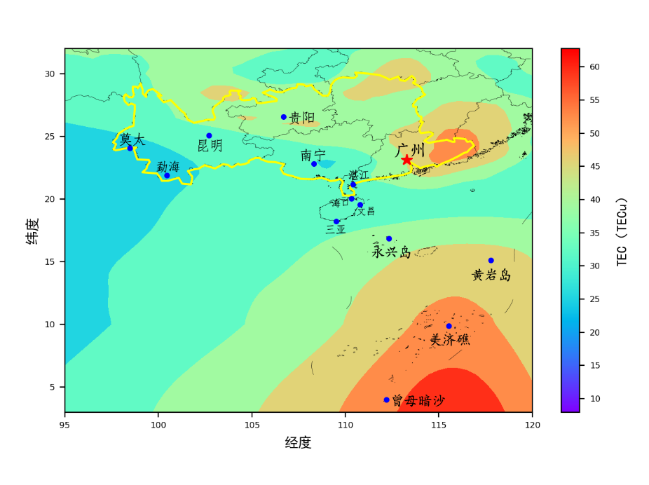 图23 南部区域电离层TEC现报图